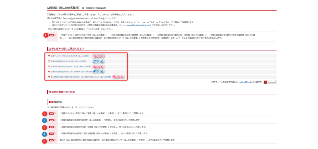5つの事前交付書面をよく読んで、①~⑤までの四角いボックス内にチェックを入れる。