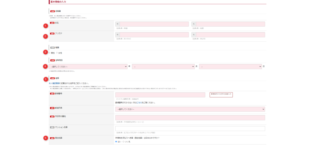 ⑤住所を入力する※本人確認書類と同一の住所