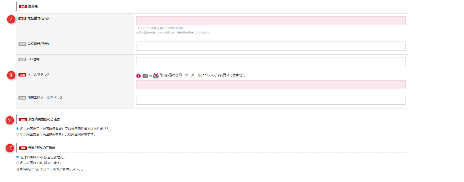 口座開設フォームより必要事項を入力する。