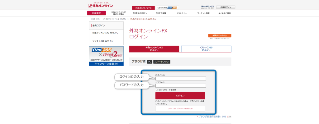 - 取引画面にログインする