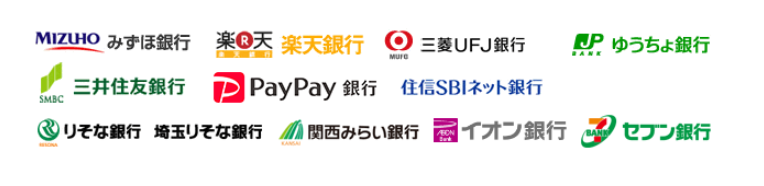 ・みずほ銀行 ・三井住友銀行 ・埼玉りそな銀行 ・楽天銀行 ・PayPay銀行 ・関西みらい銀行