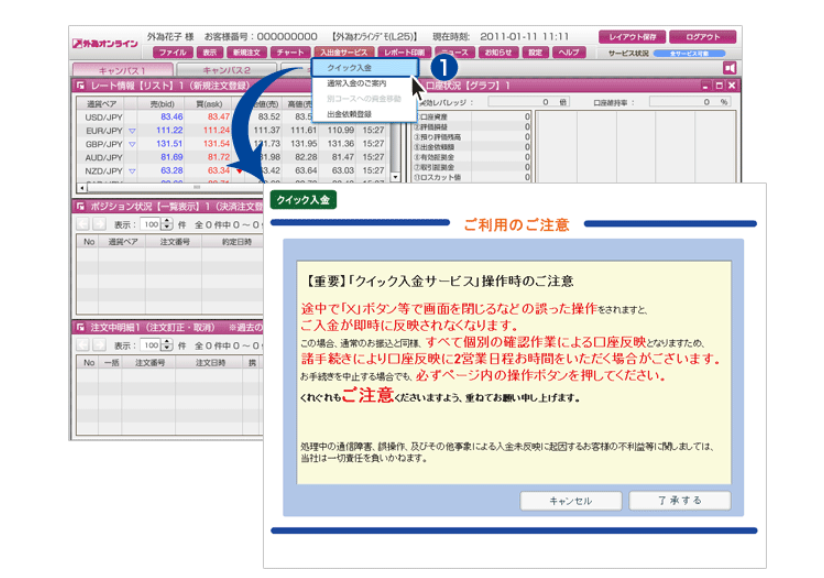 ①クイック入金