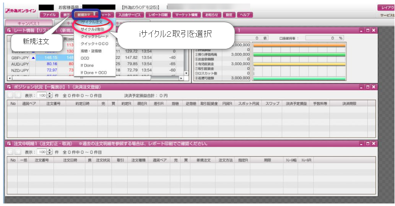 - 新規注文からiサイクル2取引を選択